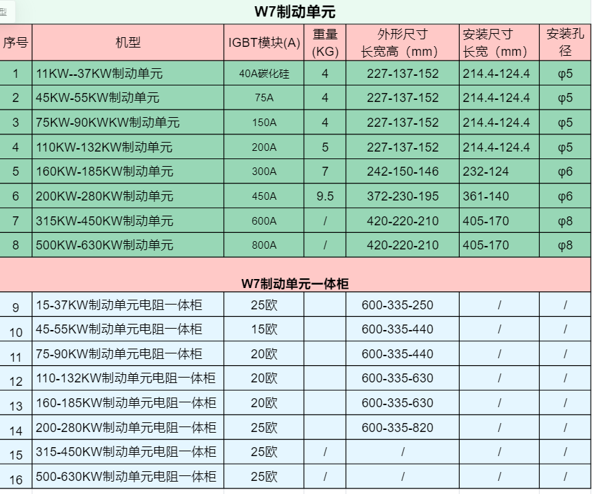 W7系列制动单元主要应用于变频器或伺服等驱动产品(后续简称驱动器)需急降速、定位、制动的场合;